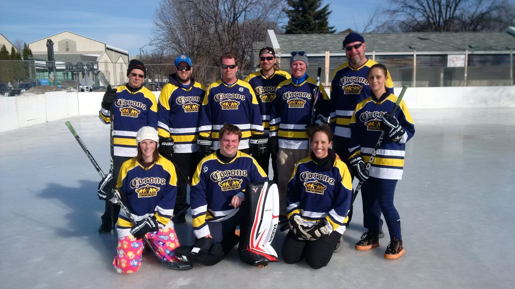 One of the Behavioural Health Foundation (St Norbert) Coed Teams playing sponge on a cold & snowy weekend! Before I ever met John, he had his son Rob drop off three boxes of spongee shoes, a box of sponge pucks and a whack of already taped up sticks both right and left handed! And two hockey nets too. We could practice during the week before the weekend games. John was also the one taking care of the rink, clearing all the snow and flooding and making ice all the time. Right then and there I knew John had the passion and love for the game of hockey I have had my whole life. For someone to do something like that without even knowing any of the people he was doing it for and doing it out of the kindness of his heart, John truly is a generous, remarkable, one of a kind good hearted person.