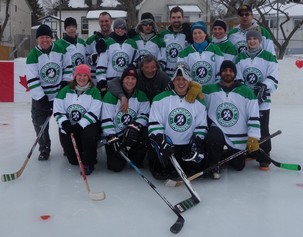The first instance of when our team, the Starpucks, realized just how special of a person you are, was shortly into our very first season of playing…way back many winters ago! We wanted to benefit from a bit of practice, and you were gracious enough to allow us to use a rink on your day off. What we did NOT anticipate, however, was that you showed up overnight to keep clearing the plethora of heavy snow on the rink …and to also warm up the changing area. We noticed a note tacked to the open door saying the following (I paraphrase).